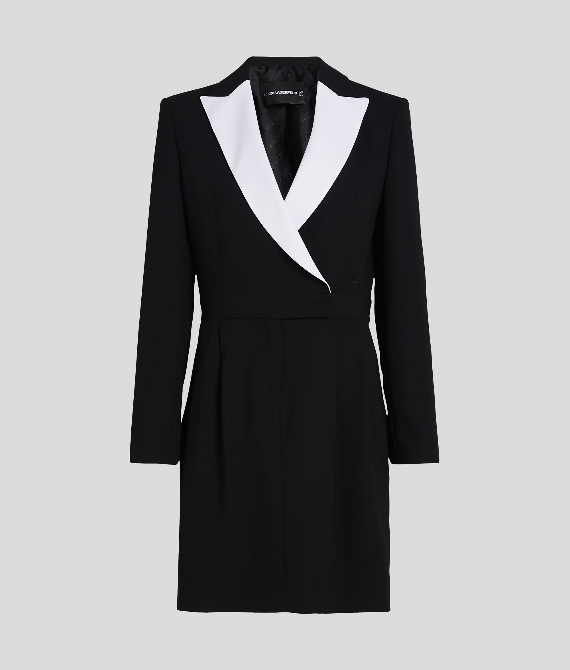 A tailored silhouette meets modern design in this blazer dress. delivering a polished aesthetic perfect for any occasion. The contrasting lapel adds a touch of flair. ensuring a standout look that effortlessly transitions from day to night.