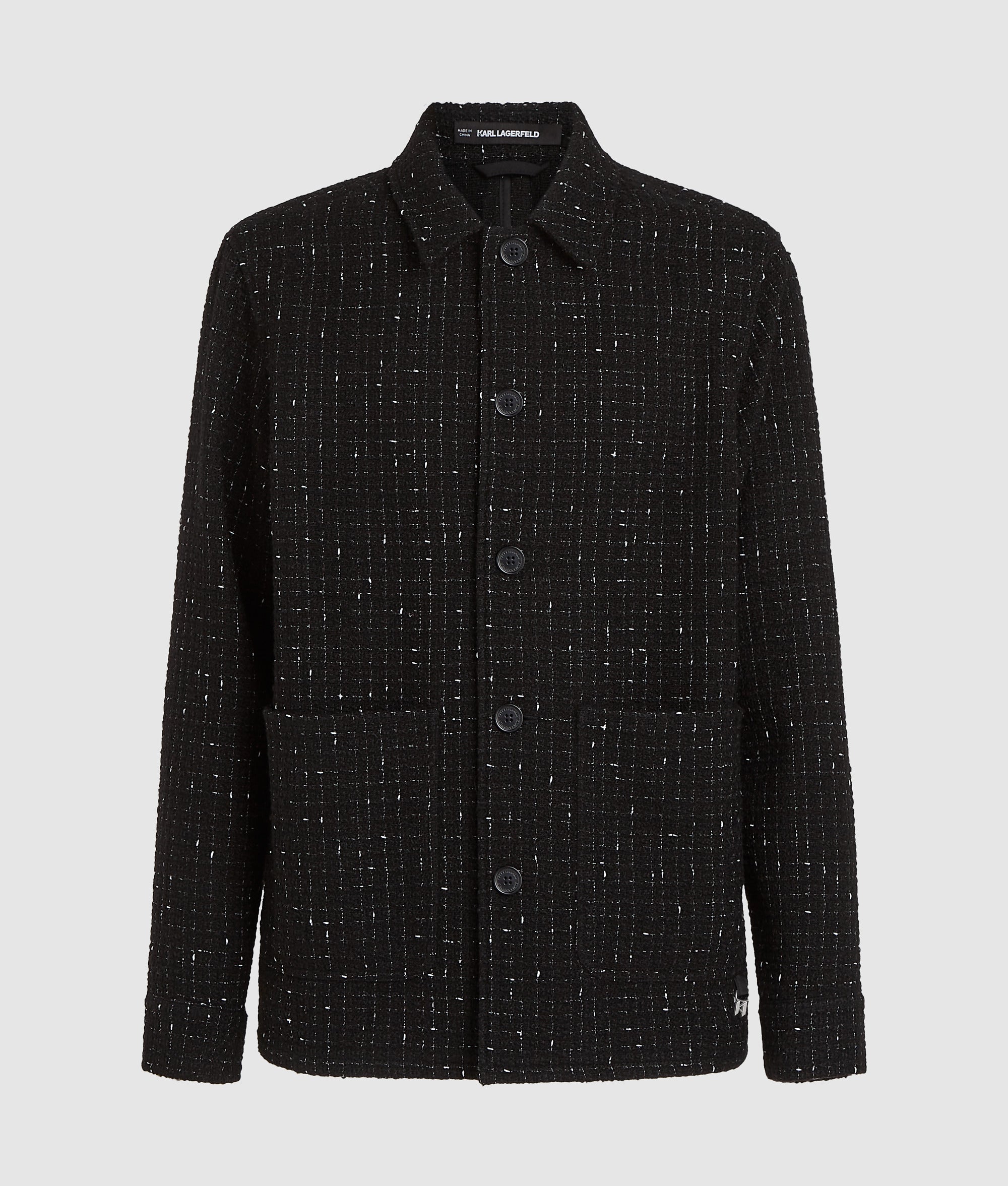 This boucle overshirt brings timeless style to casual layering. Perfect for teaming with long-sleeved tops or styling as lightweight outerwear. it features a branded button fastening and practical pockets.