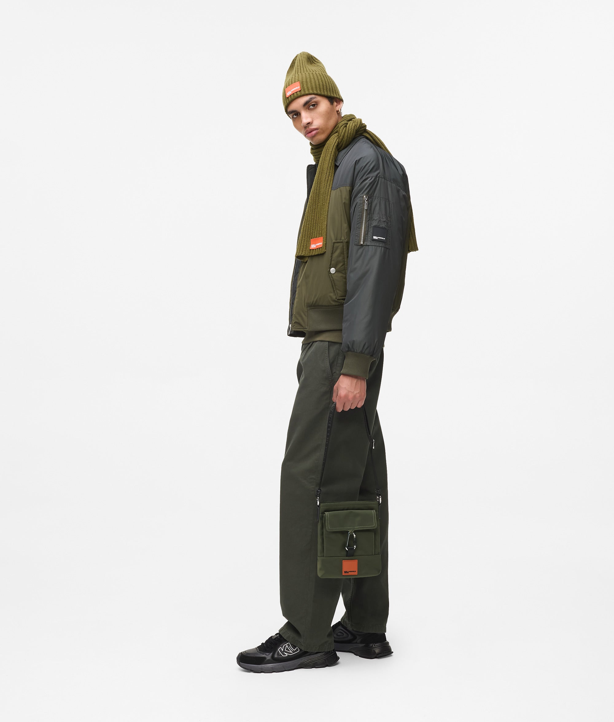 For the urban explorers. this crossbody bag features a secure zip closure to keep essentials safe and an adjustable webbing strap. A front pocket with utilitarian carabiner clip detail adds functionality and edge.