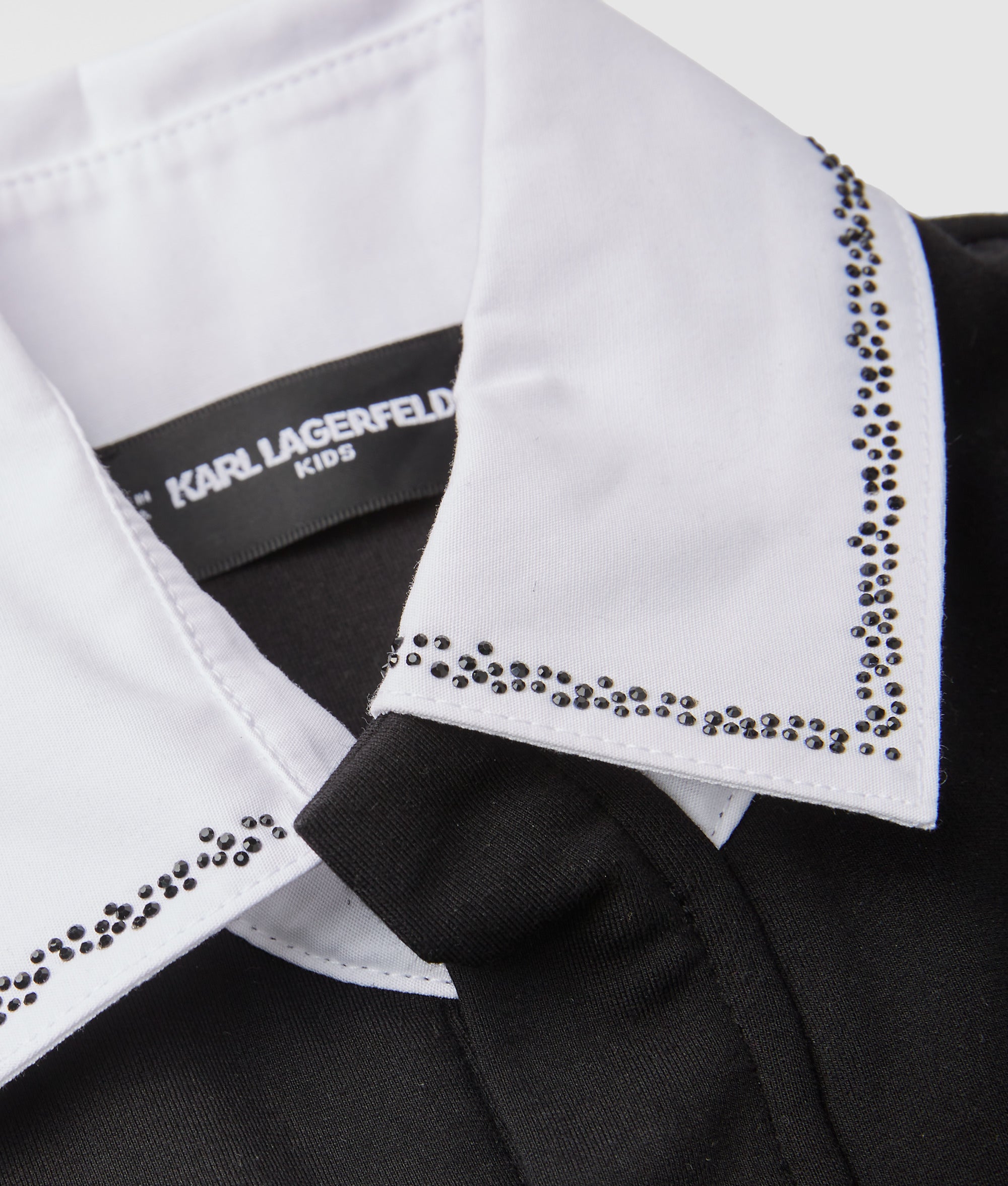 This soft knitted dress features a stretchy waist for all-day wear. A contrasting collar. topped with glittering rhinestone embellishment. adds an eye-catching finish.?