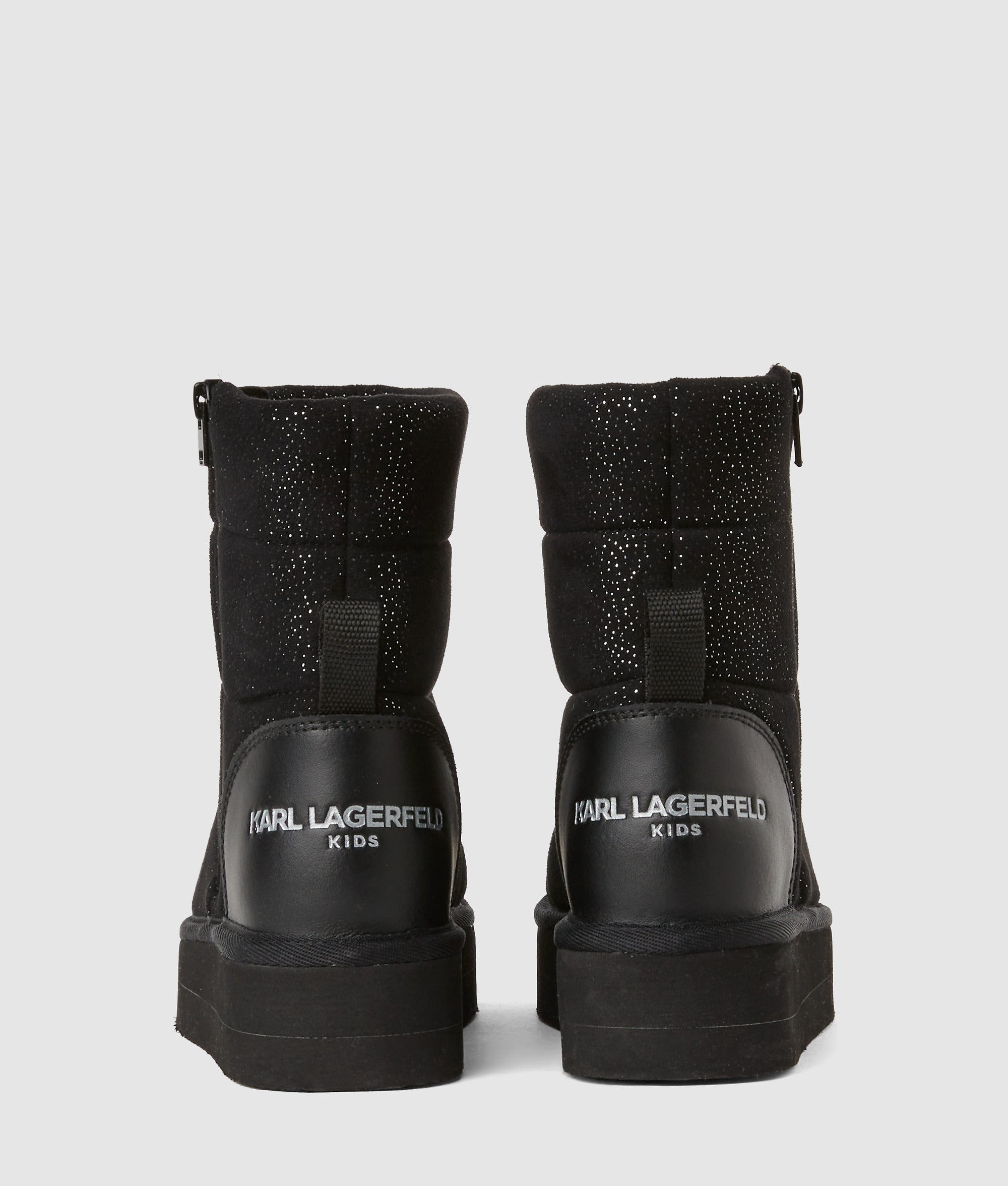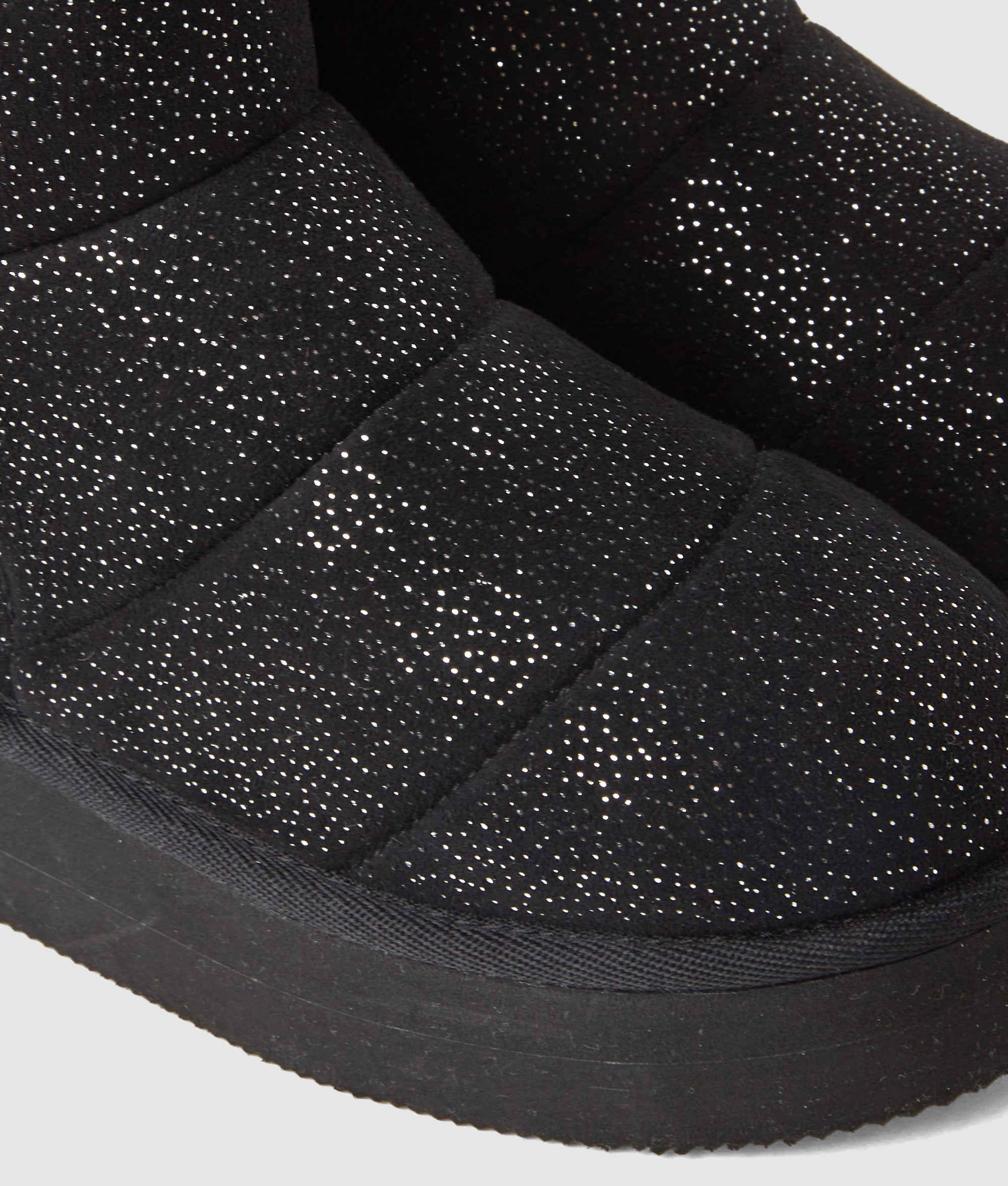 These mid-calf boots are defined by a shimmering. quilted texture and easy side zipper fastening. Breathable lining keeps feet fresh. while metallic accents add subtle edge to winter wear.