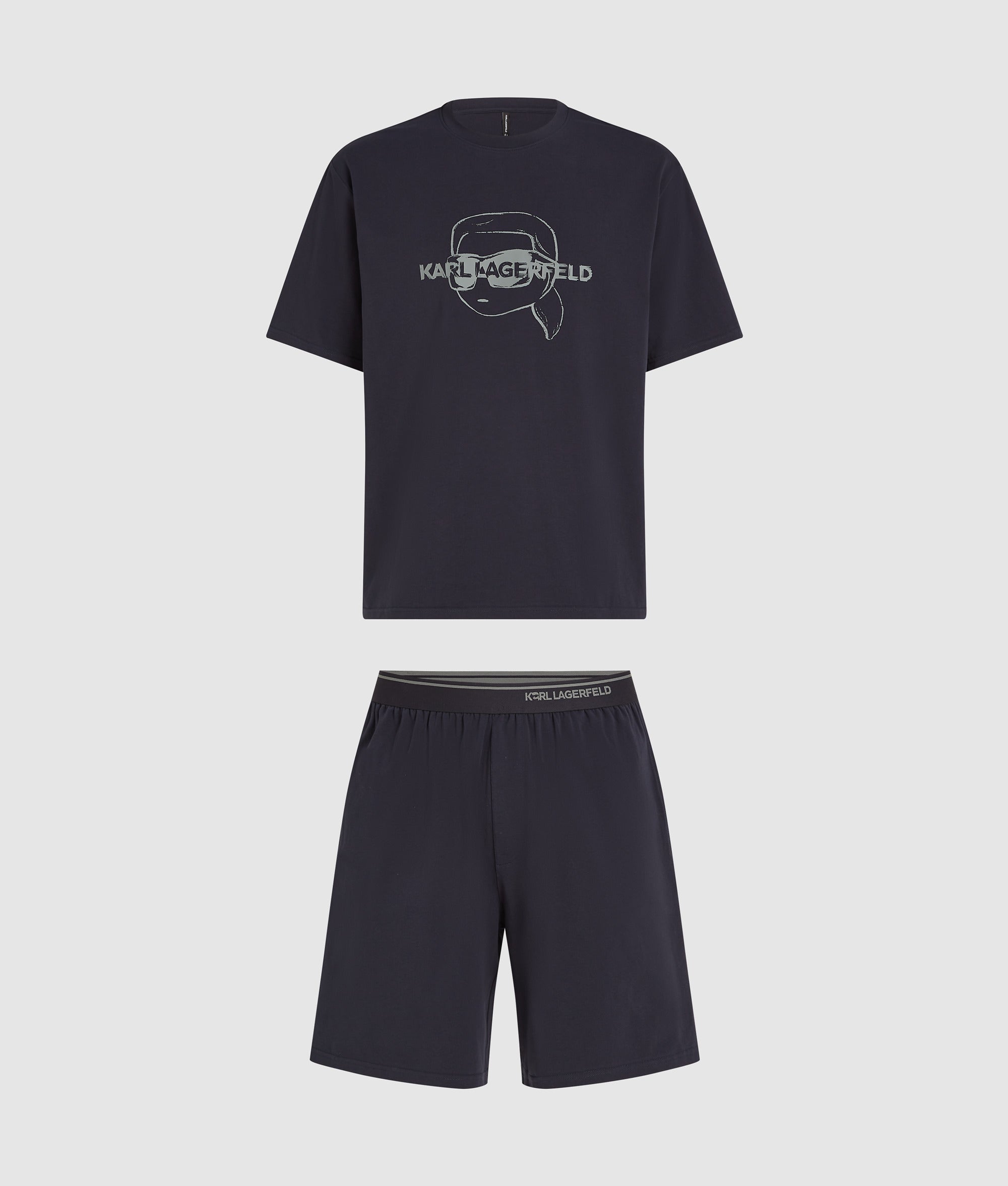 Designed for relaxed evenings. this crew-neck T-shirt and shorts pajama set offers breathable comfort with playful Ikon Karl artwork.