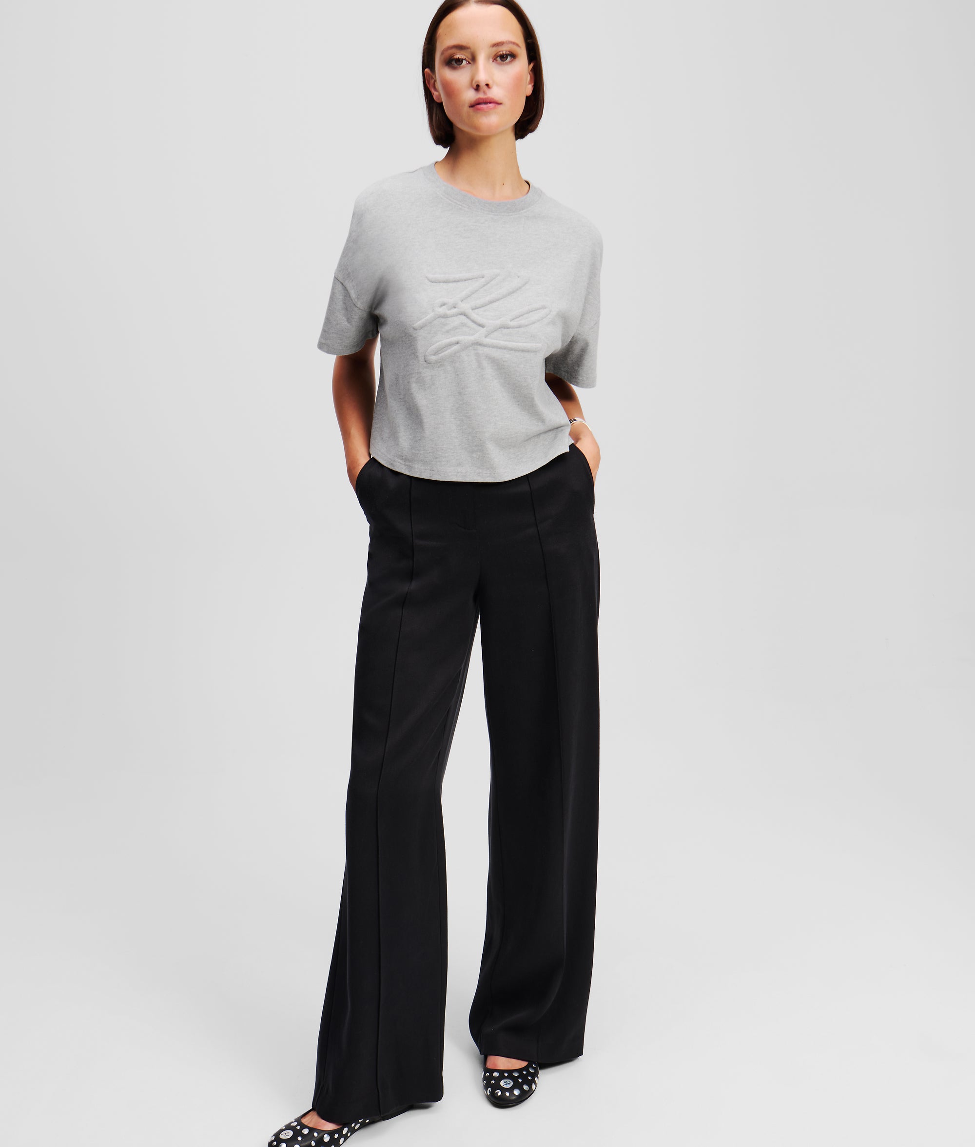Crafted from soft. breathable organic cotton. this crew-neck T-shirt is an essential for everyday comfort. The wardrobe staple is finished with embossed KARL Autograph artwork for a distinctive flair.?