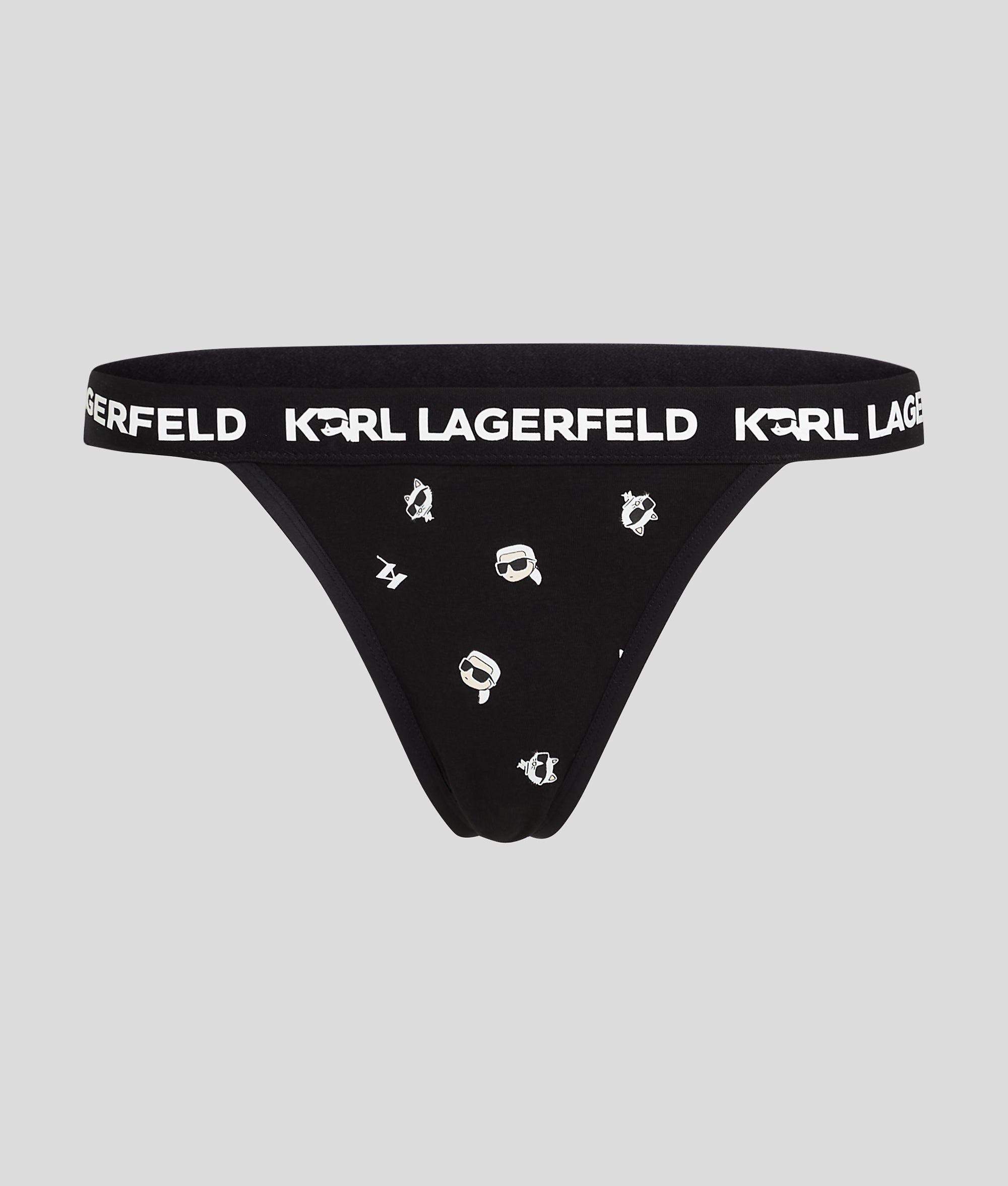 Organic cotton offers supreme comfort in this classic thong. featuring an elasticated KARL LAGERFELD waistband and playful IKON Karl and Choupette design. Pair with the coordinating bralettes for a playful ensemble.
