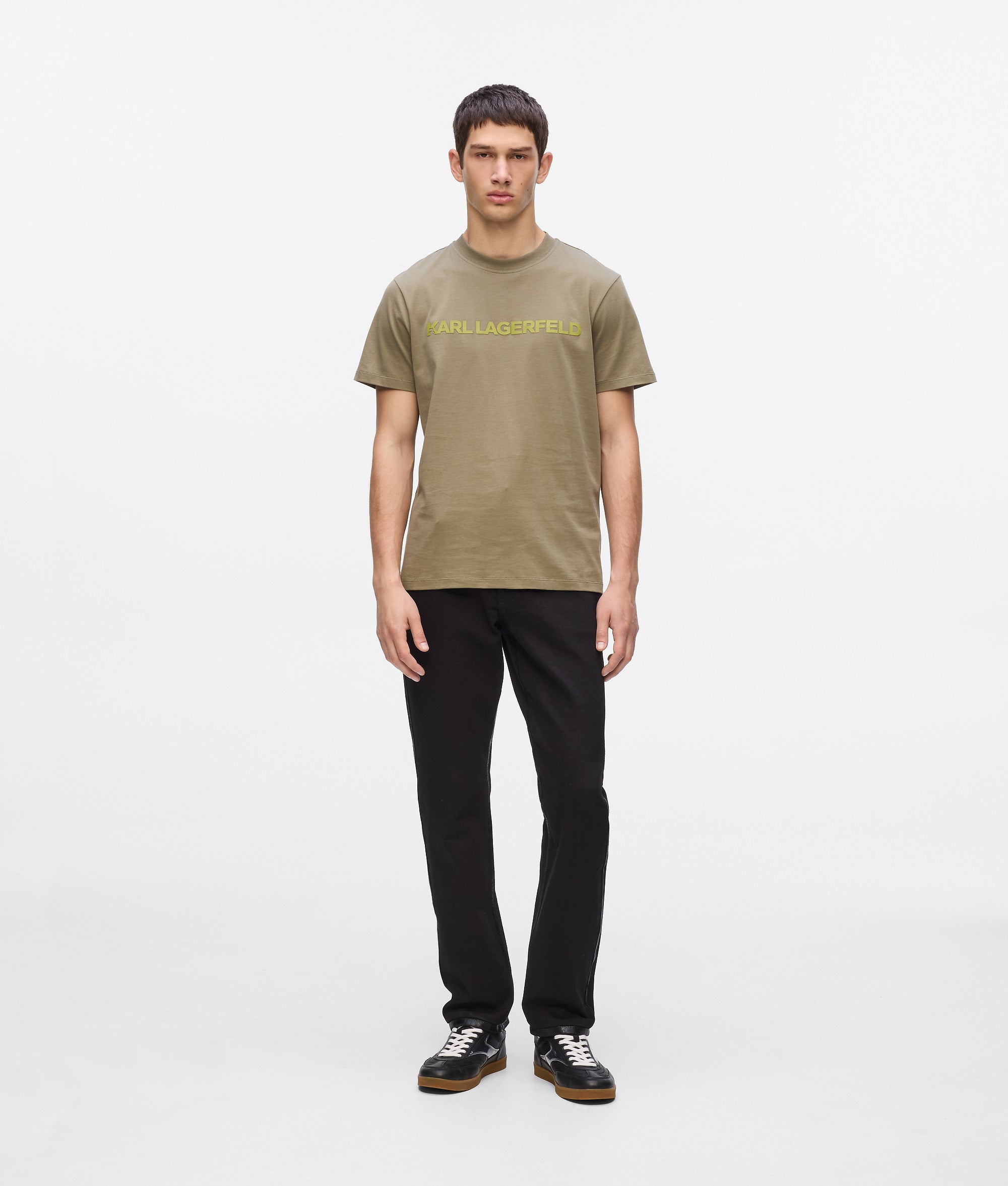 A relaxed silhouette defines this T-shirt. perfect for your effortless street style wardrobe. The classic crewneck and short sleeves ensure comfort. while the eye-catching K-initial embroidery adds a distinctive touch.?