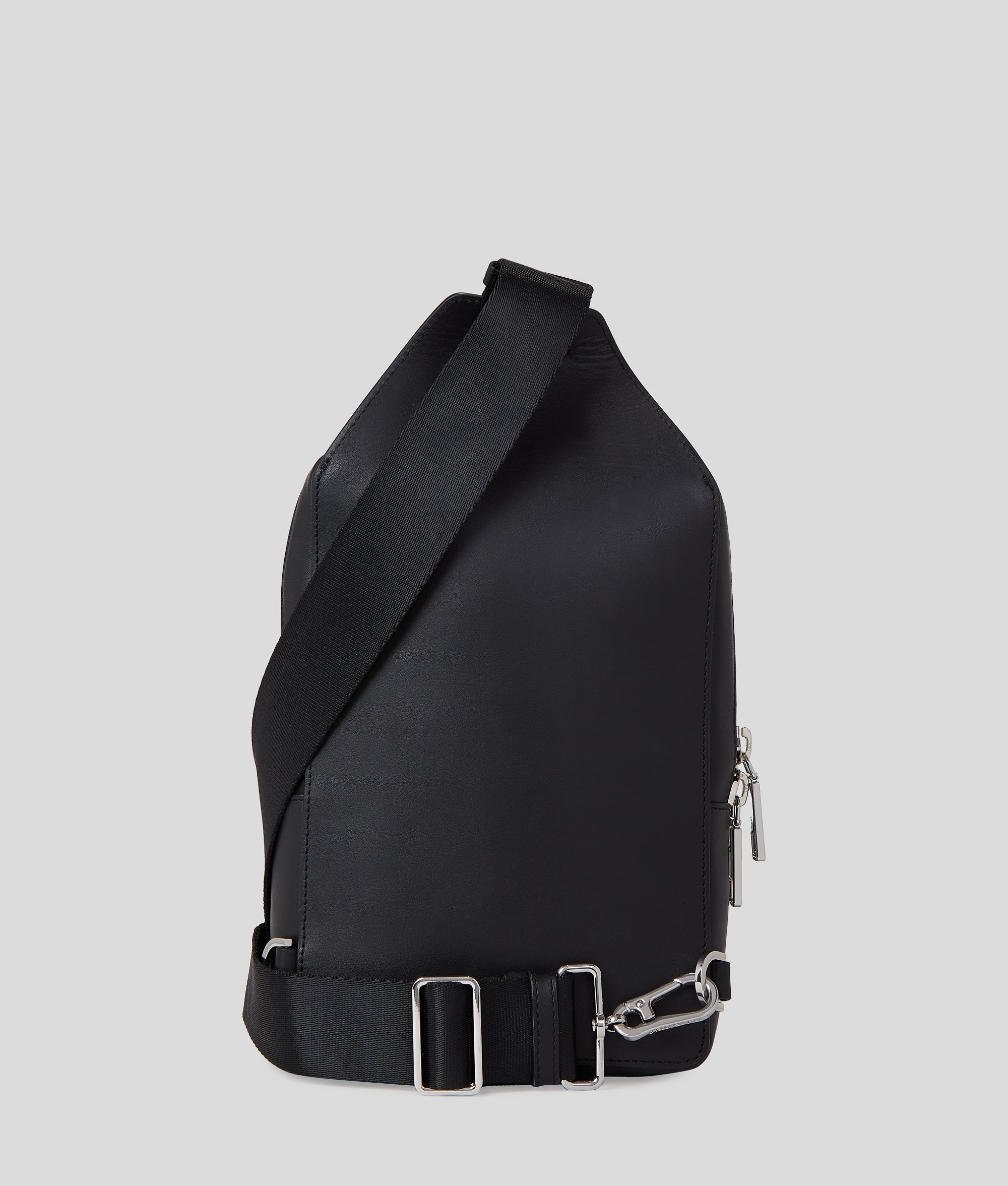 Modern practicality meets chic sophistication in the K/Loom sling bag. Made from luxurious leather. the contemporary silhouette features an all-over debossed KARL Monogram design at the front. polished metal hardware and an edgy webbing strap.