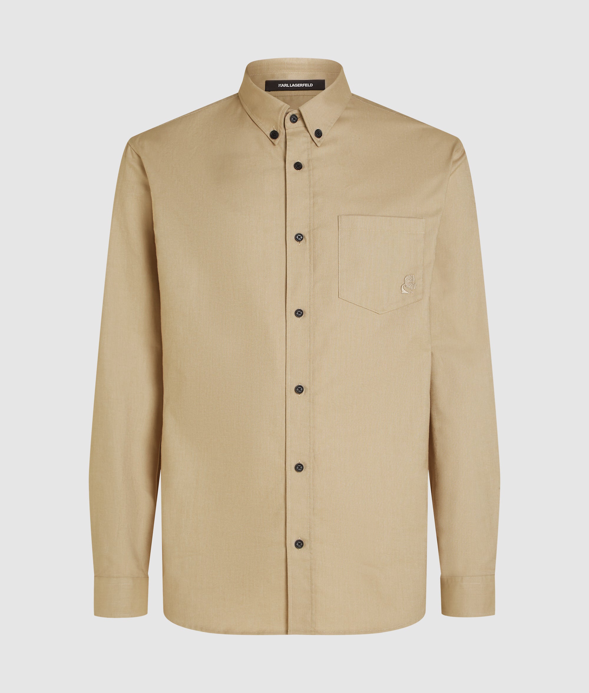 This soft and breathable cotton shirt with pocket offers a refined yet relaxed look. Branded buttons and subtle Karl Kameo embroidery add a touch of understated luxury.