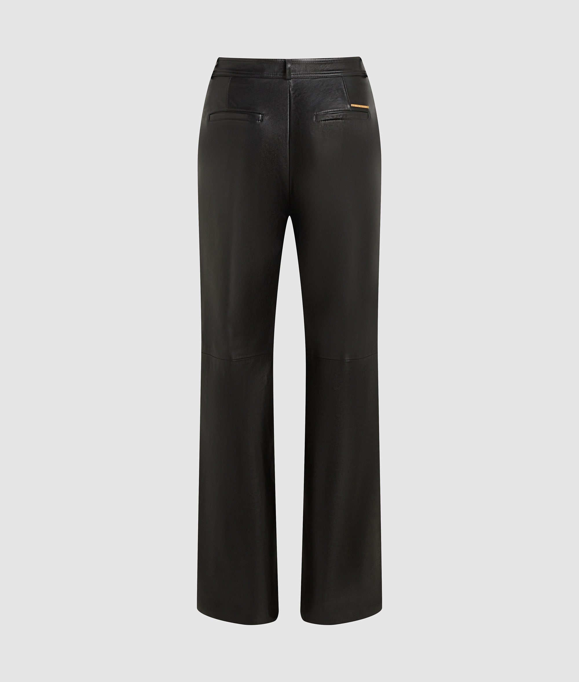 Crafted from supple leather. these sleek straight-leg trousers channel luxe edge. while gold hardware adds polish. Style yours with a crisp white shirt for a refined rock-chic look.