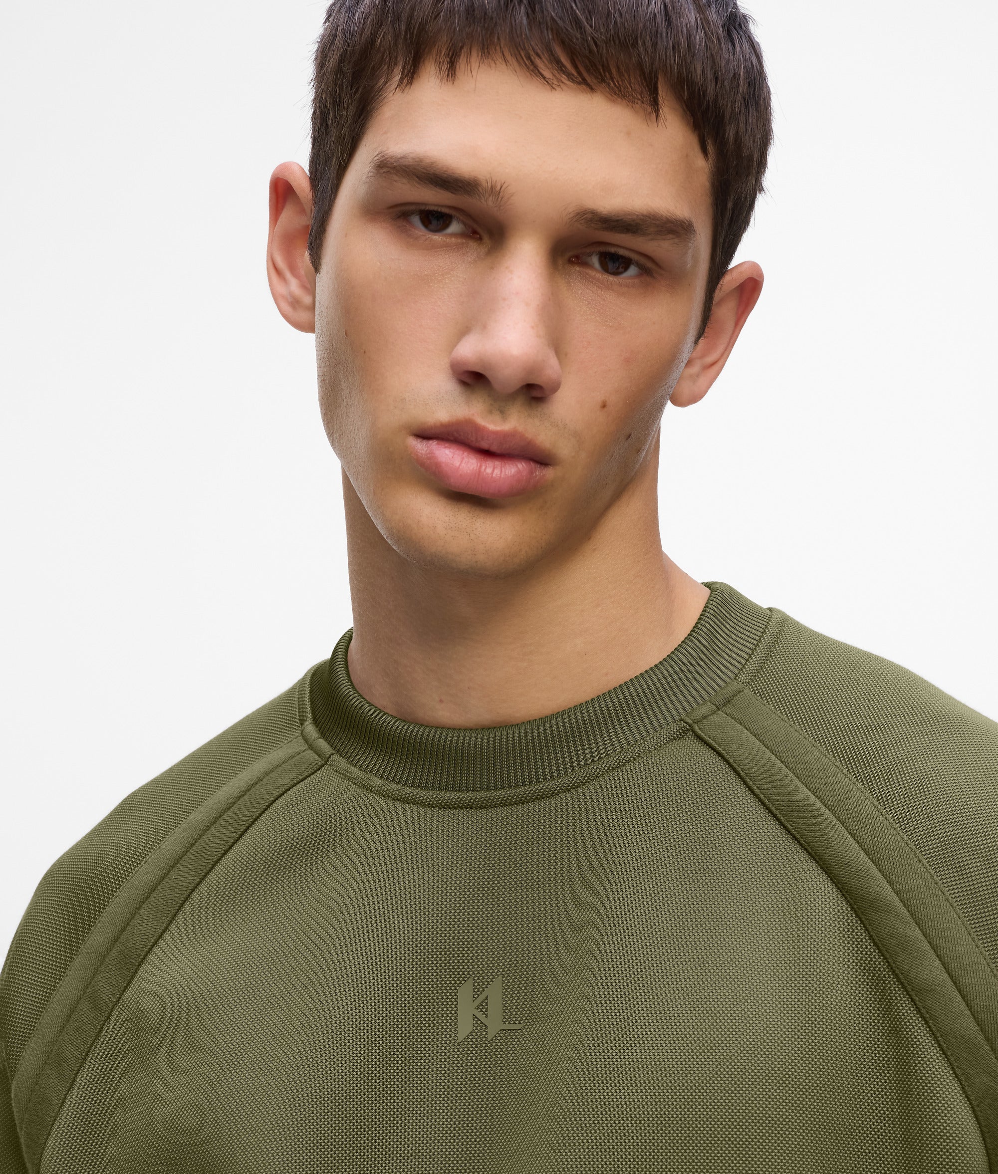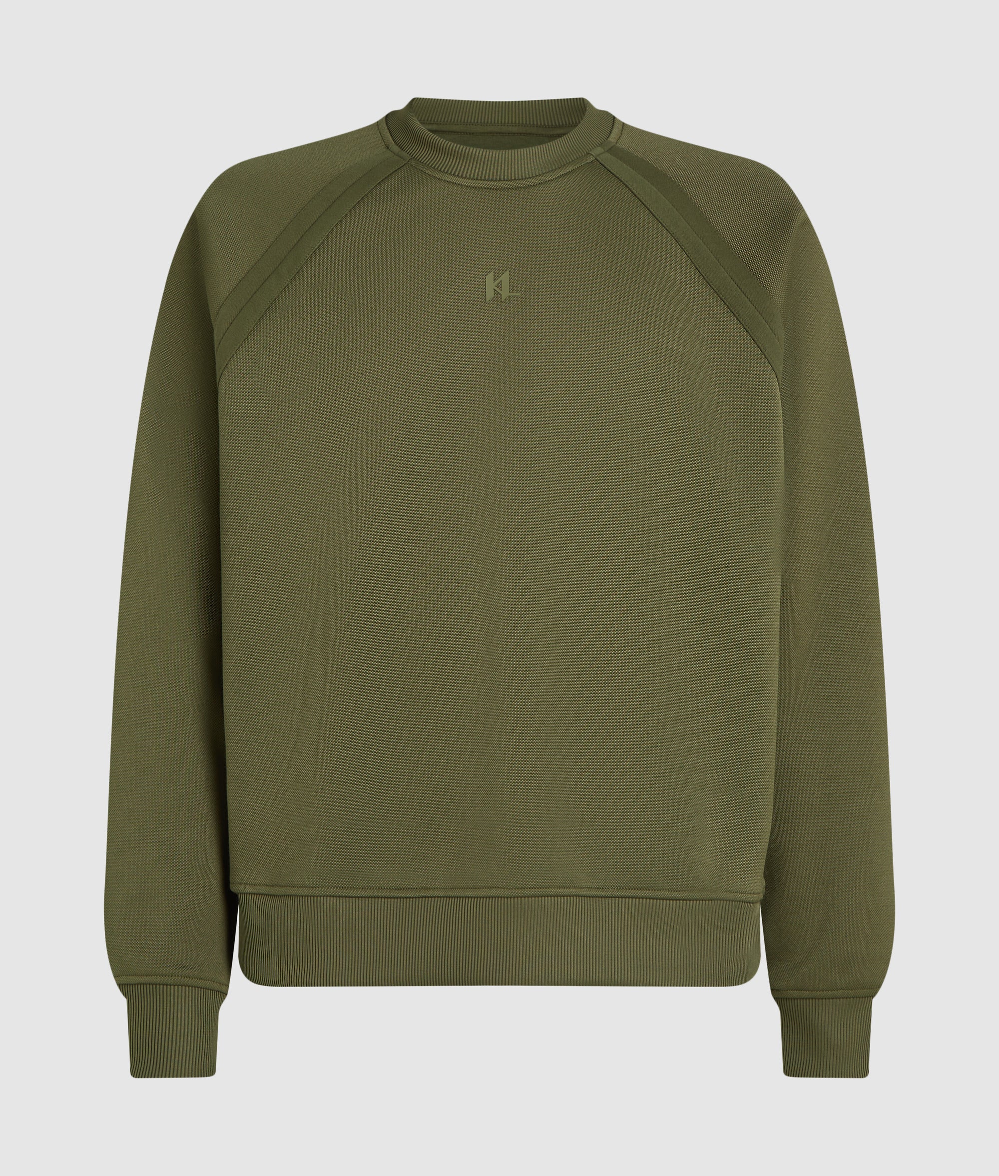 Perfect for cooler days. this sweatshirt is crafted from organic cotton with a unique structured feel. Featuring a classic crewneck. reverse panel detailing at the sleeve seams and tonal KL Monogram.