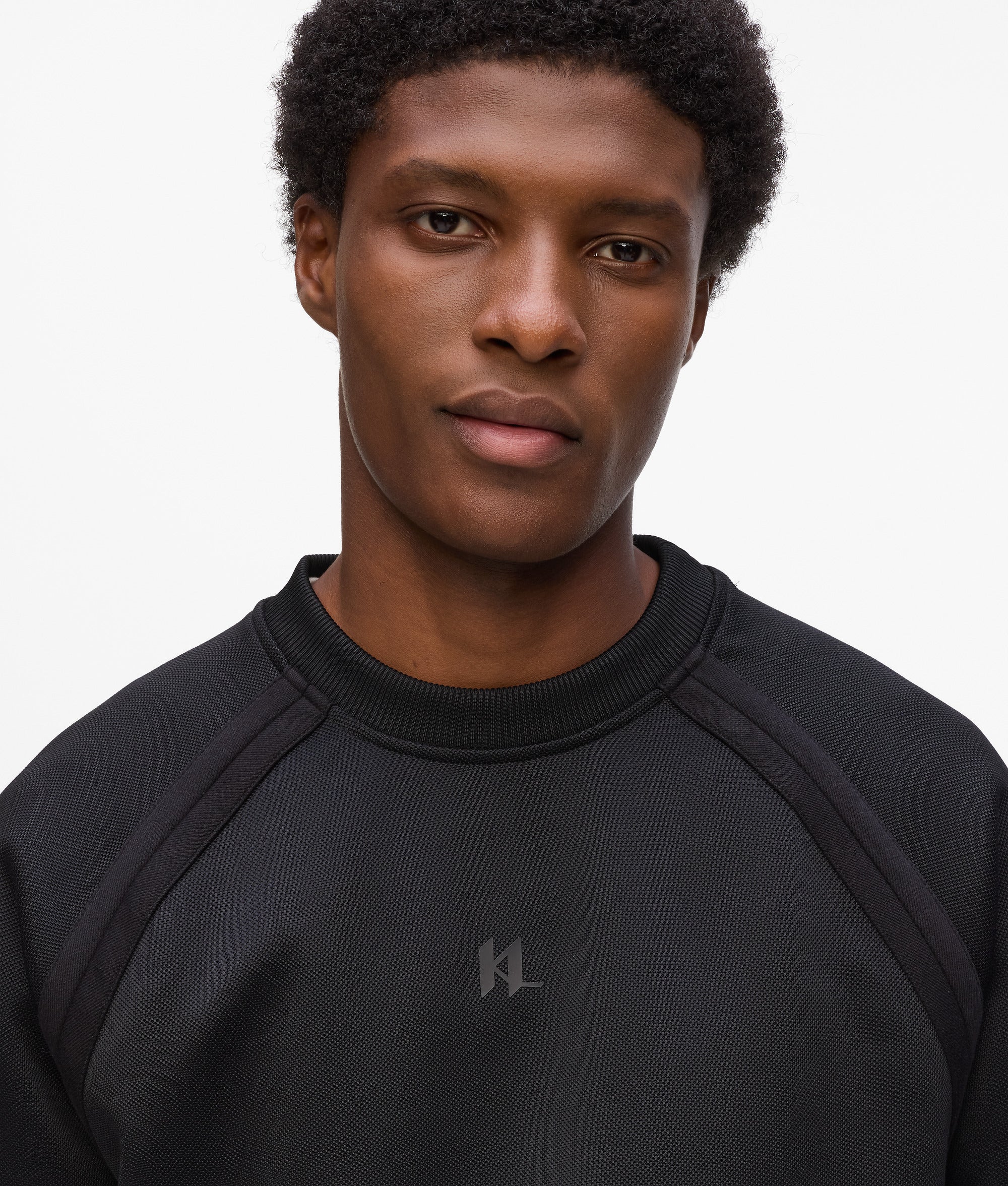 Perfect for cooler days. this sweatshirt is crafted from organic cotton with a unique structured feel. Featuring a classic crewneck. reverse panel detailing at the sleeve seams and tonal KL Monogram.