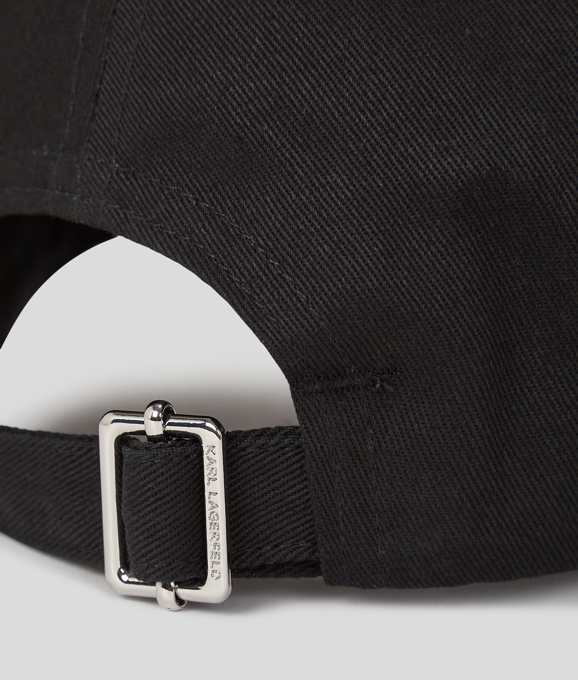 A stylish addition to any casual-cool wardrobe. this cap features an adjustable headband for a perfect fit and a classic curved peak. The standout Rue St-Guillaume artwork above the visor adds an unmistakably KARL finishing touch.